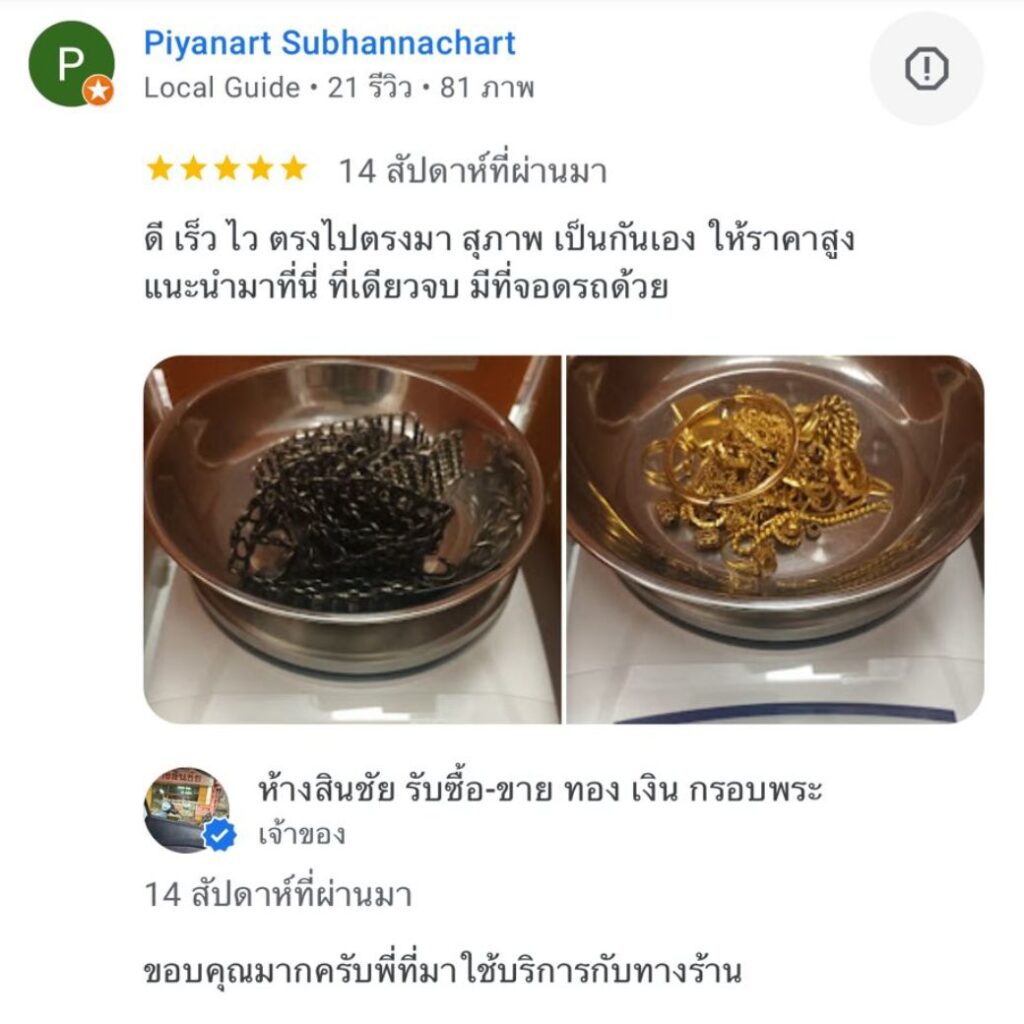 รีวิวจากลูกค้าที่มาขายทองกับร้านสินชัย รับซื้อทอง